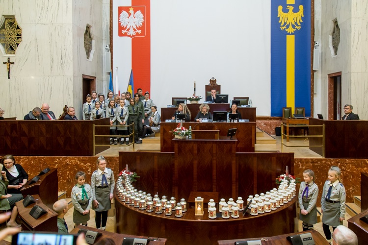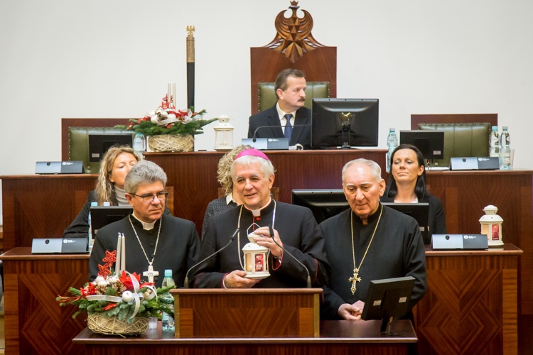 Przekazanie światła odbyło się tradycyjnie przed grudniową sesją Sejmiku Województwa Śląskiego. Harcerze i harcerki z Komendy Śląskiej Chorągwi Związku Harcerstwa Polskiego wręczyli symboliczne światełko władzom regionu, z marszałkiem województwa i wojewodą na czele, radnym, przedstawicielom służb mundurowych i duchownym trzech wyznań: biskupowi diecezji katowickiej kościoła ewangelicko-augsburskiego Marianowi Niemcowi, biskupowi pomocniczemu archidiecezji katowickiej Markowi Szkudle oraz proboszczowi kościoła prawosławnego Sergiuszowi Dziewiatowskiemu.