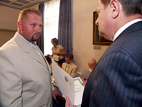 Marszałek Michał Czarski wręczył sportowcom paraolimpijskie nominacje życząc sukcesów na olimpijskich arenach w Atenach oraz gratulując dotychczasowych osiągnięć.