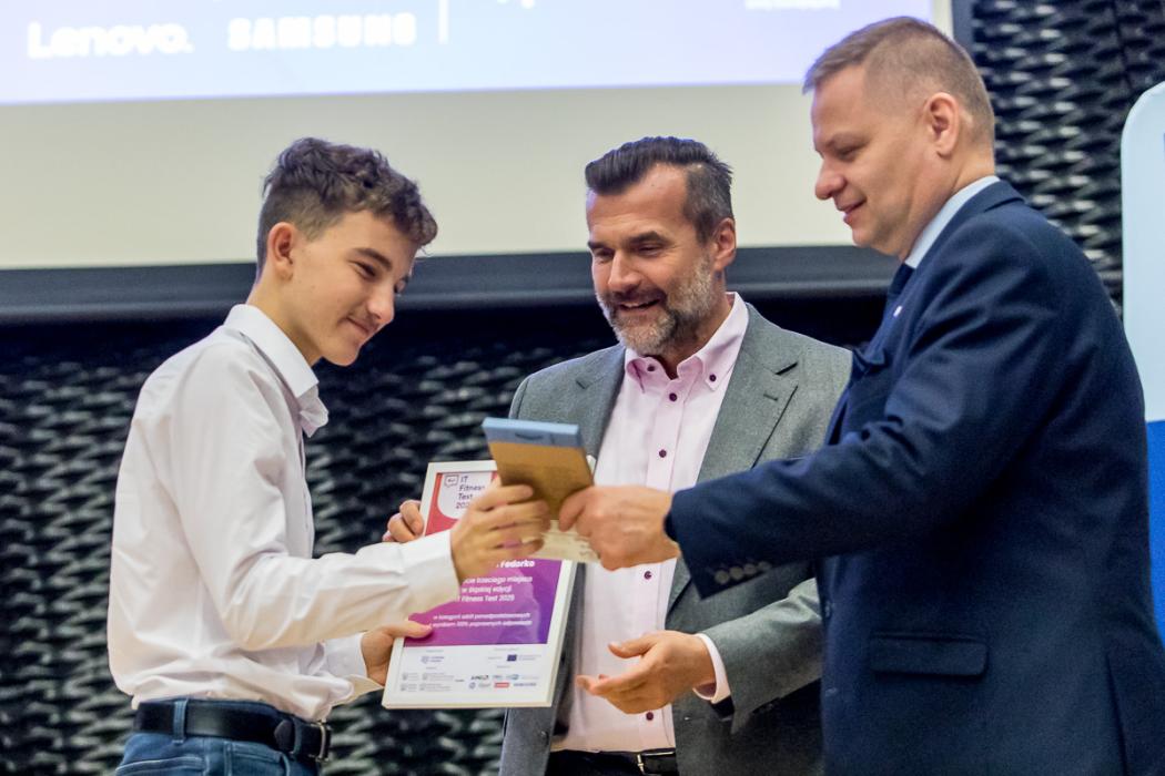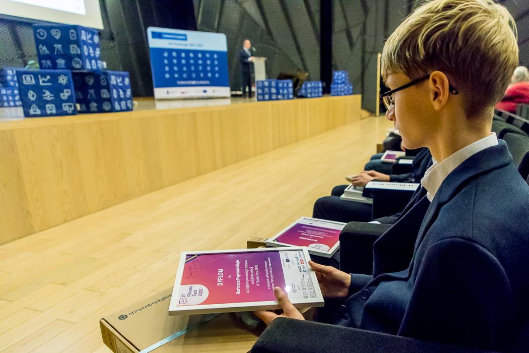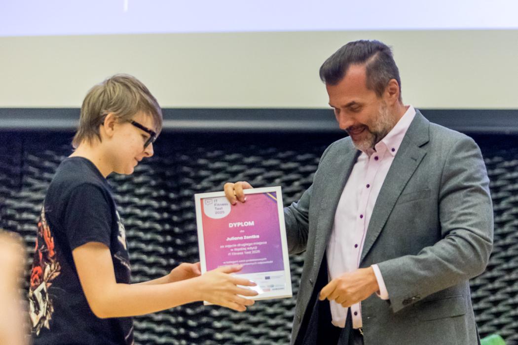Konferencja była też okazją do wręczenia wyróżnień najlepszym uczestnikom IT Fitness Test 2025 z naszego regionu. W tegorocznej edycji ogólnopolskiego sprawdzianu kompetencji cyfrowych Województwo Śląskie wykazało się wyjątkowo wysoką aktywnością. W szkołach regionu przeprowadzono 9258 testów, z czego 2614 w szkołach podstawowych i 6644 w szkołach średnich. To rekord w skali Polski. Średni wynik w regionie uczniów szkół podstawowych wyniósł 54%, natomiast młodzież ze szkół średnich osiągnęła 55% - powyżej krajowej średniej i z wyraźną poprawą względem ubiegłego roku (w poprzedniej edycji wyniki regionalne wyniosły odpowiednio 47% i 45%).