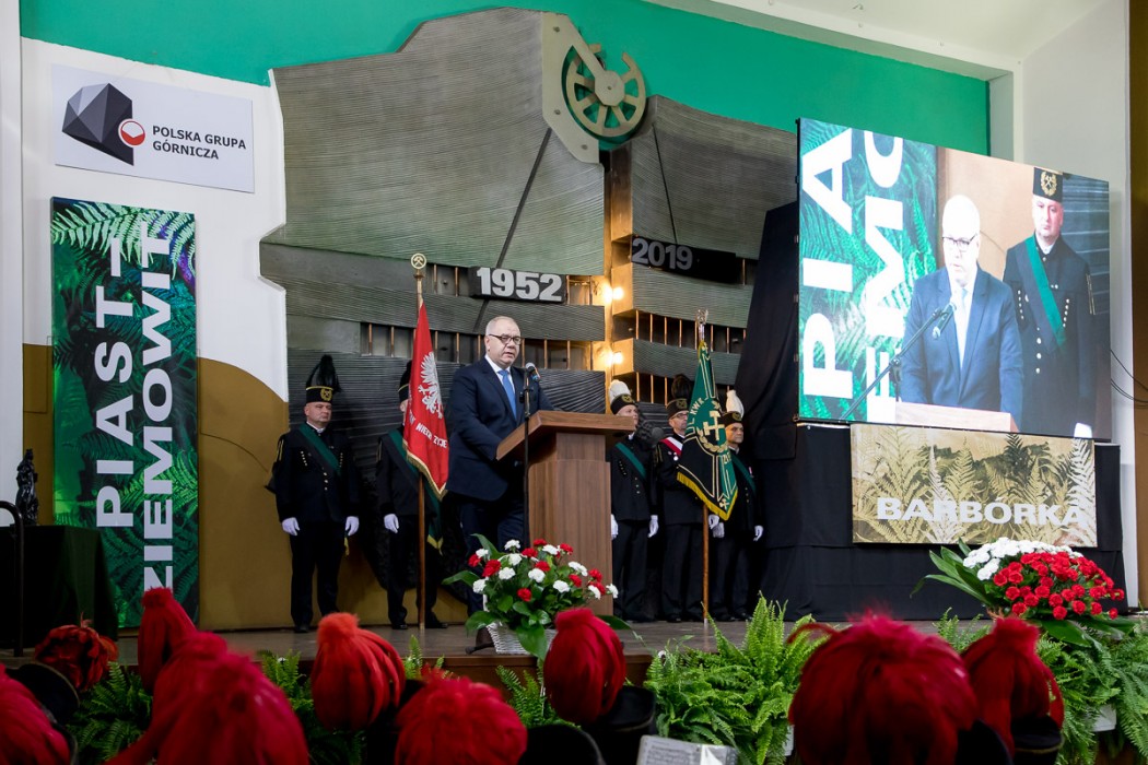 „Polskie górnictwo, to bezpieczeństwo przede wszystkim energetyczne; niskie ceny. Dzisiaj Polska ma w Europie jedne z najniższych cen energii właśnie również dzięki polskiemu górnictwu. To, co Wy drodzy górnicy potraficie robić, jest świadectwem umiejętności łączenia przeszłości z nowoczesnością. Musimy połączyć nasze umiejętności zarządzania górnictwem z trendami nowoczesności i jestem przekonany, że nie ma do tego lepszego miejsca niż Śląsk. Chcę pochylić czoła przed górnikami, którzy wykonują trud i poświęcenie dla dobra Polski. To wysiłek trudny do porównania z czymkolwiek innym. Oni wykuwają w rytm śląskich serc polski przemysł. Dziękuję Wam za Wasz wielki trud i wielką pracę” – mówił premier Mateusz Morawiecki