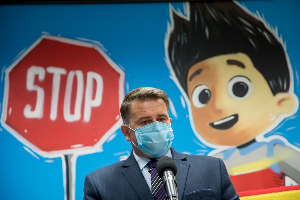 Wicemarszałek Wojciech Kałuża wręczył dzieciom plecaki z elementami odblaskowymi na rowery i odzież w ramach trwającej w województwie akcji WORD pod hasłem „Bezpieczna droga do szkoły”.