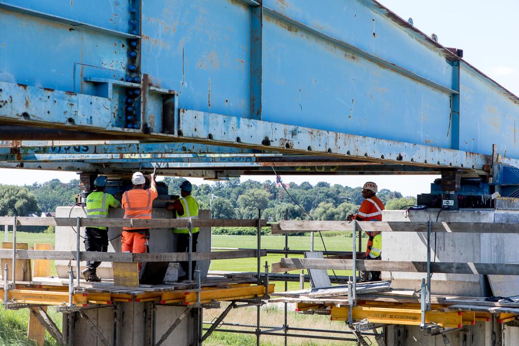 Budowa mostu na Odrze w Raciborzu. fot. Maciej Dziąbek / UMWS Budowa mostu na Odrze w Raciborzu. fot. Maciej Dziąbek / UMWS
