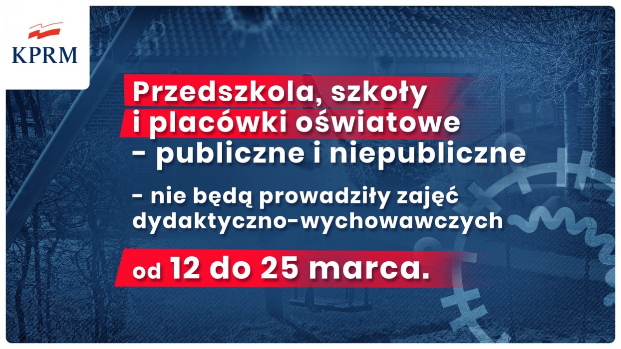 „Koronawirus może stać się bardzo groźny, dlatego trzeba działać szybko i z wyprzedzeniem” – mówił premier Mateusz Morawiecki. Decyzją rządu placówki oświatowe i szkoły wyższe będą zamknięte od 12 do 25 marca, z czego dwa pierwsze dni to okres przejściowy. W tym czasie w przedszkolach i szkołach podstawowych będą odbywały się jedynie zajęcia opiekuńcze.