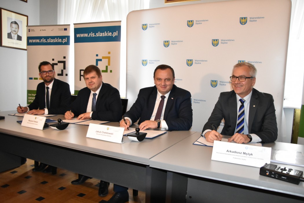 W uroczystym podpisaniu porozumienia na rzecz współpracy w ramach sieci z nowymi obserwatoriami uczestniczył marszałek Jakub Chełstowski, wicemarszałek Wojciech Kałuża, Barbara Juszczyk - sieć badawcza Łukasiewicz - Instytut Metali Nieżelaznych, Prof. dr hab. inż. Arkadiusz Mężyk, Dziekan Wydziału Mechanicznego Technologicznego Politechniki Śląskiej oraz Bartłomiej Płonka, Śląskie Centrum Naukowo - Technologiczne Przemysłu Lotniczego sp z o.o.