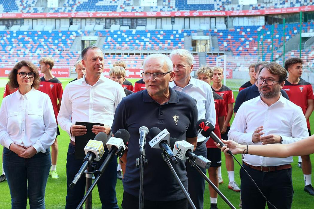 W konferencji odbywającej się na murawie Górnika Zabrze uczestniczyli: Piotr Borys, sekretarz stanu w Ministerstwie Sportu i Turystyki, marszałek Wojciech Saługa, Ewa Weber pełniąca funkcję prezydenta Zabrza, Maciej Kolon radny Sejmiku Województwa Śląskiego i Stanisław Oźlizło, legenda Górnika Zabrze.
