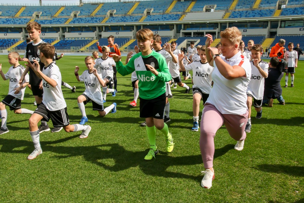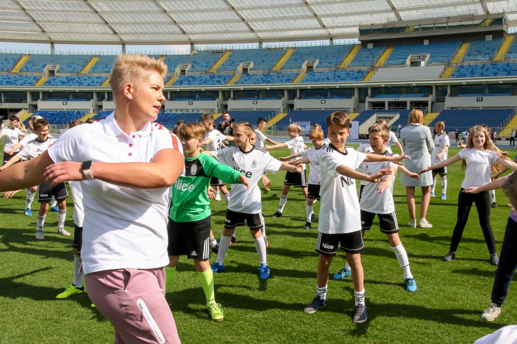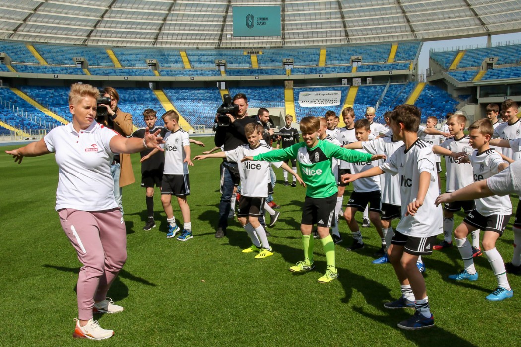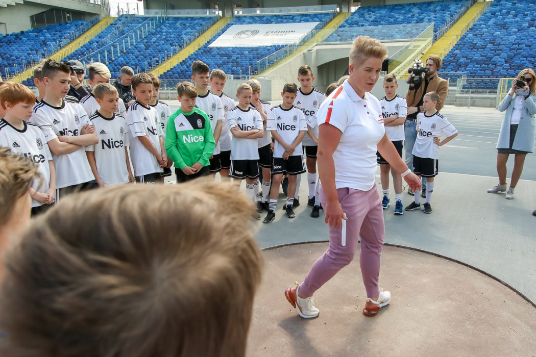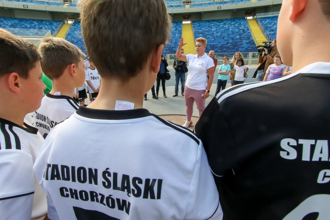 Po zakończeniu konferencji prasowej Anita Włodarczyk przeprowadziła trening sportowy dla dzieci i młodzieży na płycie Stadionu Śląskiego.