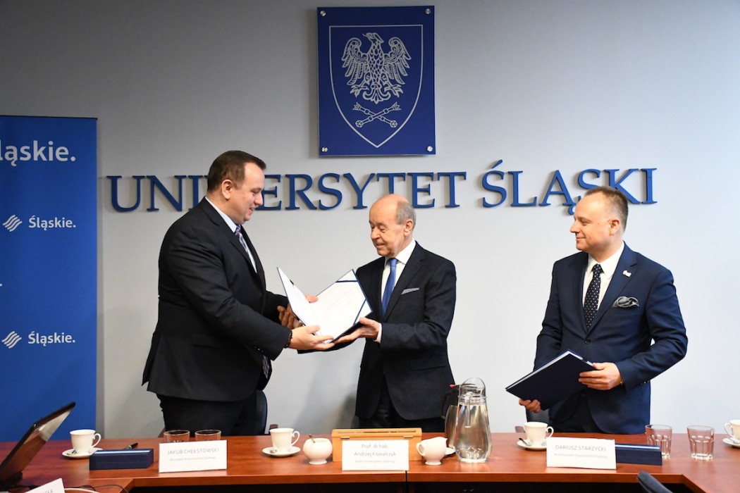 W uroczystym podpisaniu umowy uczestniczył marszałek Jakub Chełstowski, wicemarszałek Dariusz Starzycki oraz rektor Uniwersytetu Śląskiego, prof. Andrzej Kowalczyk.