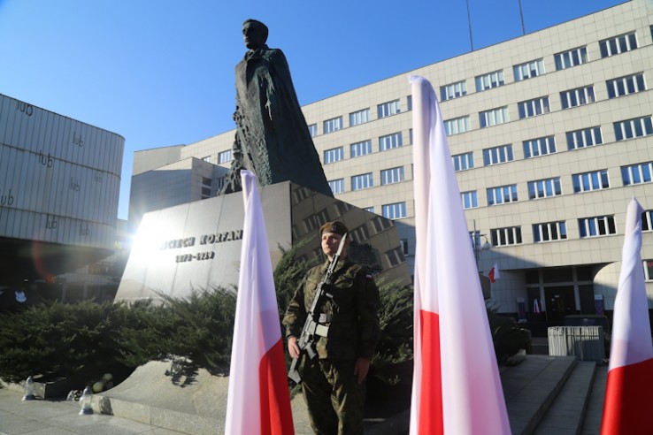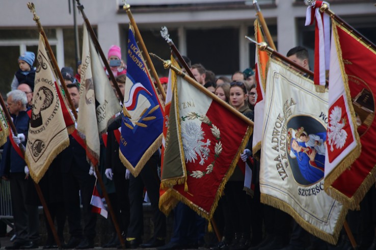 Pod pomnikiem Józefa Piłsudskiego odbyły się uroczyste obchody Narodowego Święta Niepodległości