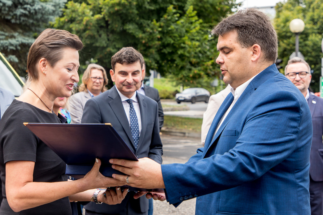 W uroczystym przekazaniu ambulansów, które trafią do Knurowa, Rybnika i gminy Tworóg, uczestniczyli m.in. przewodnicząca Komisji Polityki Społecznej i Ochrony Zdrowia Sejmiku Województwa Śląskiego Aleksandra Poloczek, dyrektor WPR w Katowicach Łukasz Pach, posłanki Katarzyna Stachowicz i Urszula Koszutska oraz wojewoda śląski Marek Wójcik.