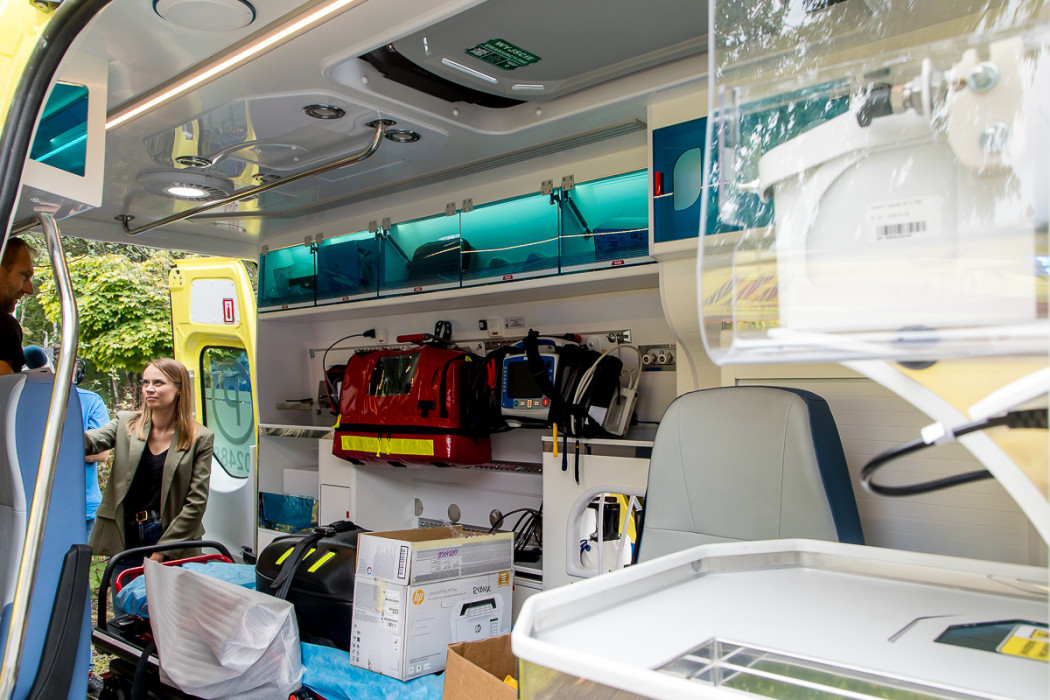 Ambulanse są doskonale wyposażone w m.in.: wideolaryngoskop, urządzenie do bezpiecznego oczyszczania powietrza w karetce, urządzenie do przenoszenie pacjenta siedzącego o nośności co najmniej 170 kg z systemem trakcyjnym umożliwiającym zsuwanie pacjenta po schodach i nosze z systemem elektrycznego wspomagania podnoszenia, opuszczania oraz załadunku noszy.