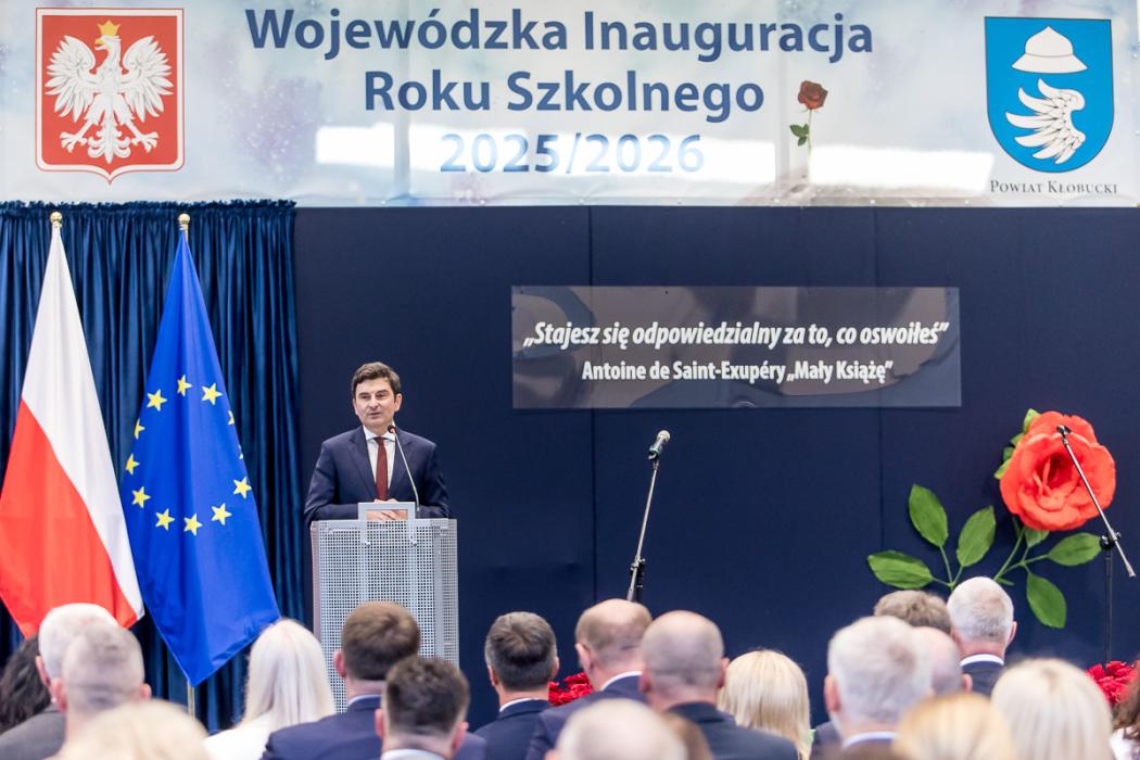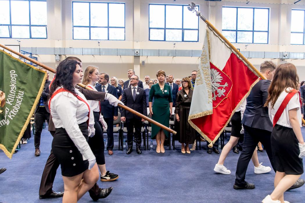 - To ważny dzień w historii powiatu, bo wojewódzka inauguracja roku szkolnego właśnie w zespole szkół w Kłobucku odbywa się po raz pierwszy. Ale też trzeba zaznaczyć, że jest to miejsce na edukacyjnej mapie regionu szczególne, mocno stawiające na nowoczesne technologie, a żyjemy w czasach, gdzie z postępem technologicznym musimy być na bieżąco, bo właśnie tego wymaga od nas wszystkich, a zwłaszcza od młodych ludzi, rynek pracy. Ta szkoła kreując nowe zawody, wychodzi naprzeciw nowoczesnej gospodarce. Podstawą są warsztaty, które ugruntowują wiedzę w praktyce. Przedsiębiorca zatrudniający absolwenta, dosłownie, stawiając go za maszyną wartą pół miliona, czy nawet milion złotych może mu zaufać. Mieć pewność, że powierzone młodemu pracownikowi zadanie zostanie wykonane fachowo i precyzyjnie, zgodnie z aktualną technologią. Szkoła pełni dziś bardzo ważną rolę dla tej części regionu. Dostarcza fachowców lokalnym firmom. Szkoły o konkretnym zawodowym profilu pełnią więc bardzo ważną rolę w łańcuchu gospodarki. Cieszę się, że przeżywają swój renesans – zaakcentował Henryk Kiepura, sekretarz stanu w Ministerstwie Edukacji, który inaugurację objął honorowym patronatem.