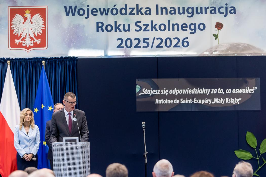 - Postęp technologiczny wręcz będzie to na nas wymuszał, żyjemy bowiem w erze powszechnej cyfryzacji z coraz większym udziałem sztucznej inteligencji. Województwo Śląskie przywiązuję ogromną wagę do implementacji środków na kształcenie zawodowe. Wyprzedziliśmy inne regiony w realizacji projektów służących rozwojowi tego profilu szkolnictwa, czego przykładem jest przedsięwzięcie „Śląskie zawodowcy”, ukierunkowane właśnie na szkolnictwo zawodowe, współpracę z przedsiębiorcami i szkołami, by absolwentów już teraz przygotowywać do rynku pracy. Kształcenie zawodowe przez lata było pomijane, a obecnie widzimy, jak bardzo jest ono potrzebne. Życzę wszystkim uczniom, aby ten rok szkolny był dla nich wyjątkowy, obfitował w sukcesy, bo nie ukrywajmy, świetnie wykształcona młodzież posiadająca fachową wiedzę i umiejętności jest naszą wspólną przyszłością – podkreślił obecny na uroczystości wicemarszałek Województwa Śląskiego, Grzegorz Boski.
