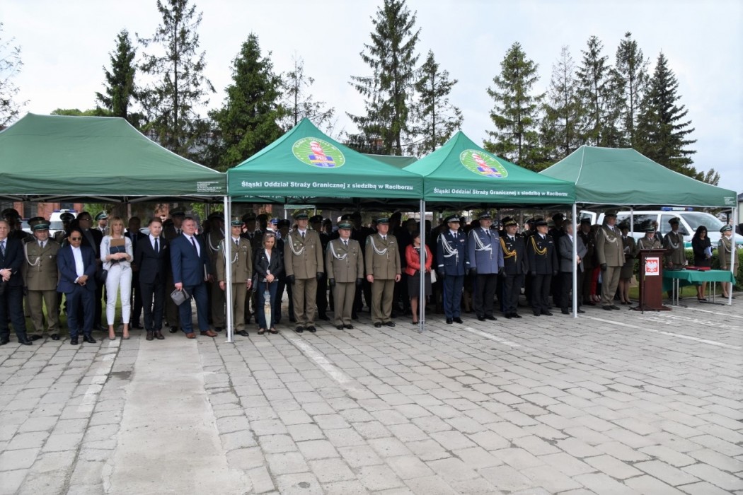 W głównych uroczystościach, które w tym roku odbyły się na terenie Komendy Śląskiego Oddziału Straży Granicznej w Raciborzu wzięli udział m.in. Zastępca Przewodniczącego Komisji Administracji i Spraw Wewnętrznych Poseł na Sejm RP Jerzy Polaczek, Wojewoda Opolski Adrian Czubak, Wicemarszałek Województwa Śląskiego Michał Woś, Wiceprezydent Miasta Racibórz Dominik Konieczny, parlamentarzyści, samorządowcy, przedstawiciele współdziałających służb mundurowych i instytucji z terenu województwa śląskiego i opolskiego, duchowieństwa, sądownictwa i prokuratury, dyplomaci oraz delegacje służb granicznych z Czech.