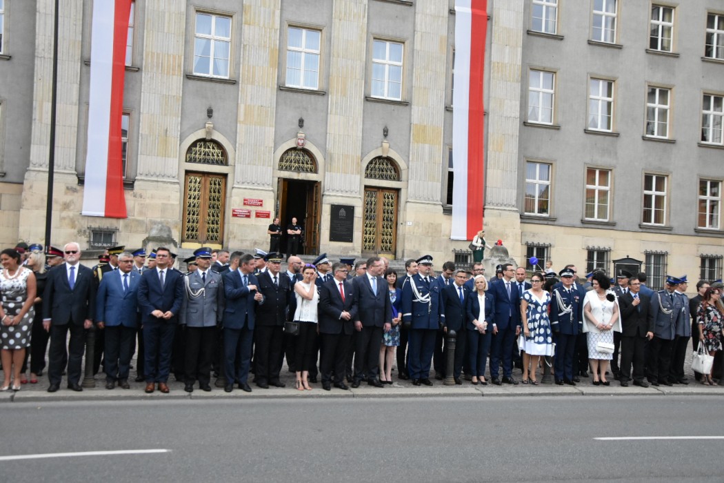 Podczas uroczystości Prezes Rady Ministrów wraz z marszałkiem Jakubem Chełstowskim oraz wojewodą śląskim Jarosławem Wieczorkiem złożyli kwiaty pod Pomnikiem Marszałka Józefa Piłsudskiego oraz obejrzeli policyjną defiladę z udziałem Orkiestry Komendy Wojewódzkiej Policji w Katowicach. Premier podziękował wszystkim policjantom oraz ich rodzinom za wierną i wspaniałą służbę społeczeństwu polskiemu. Wręczono także państwowe i resortowe odznaczenia, ordery, wyróżnienia, a także akty mianowania na wyższe stopnie policyjne.