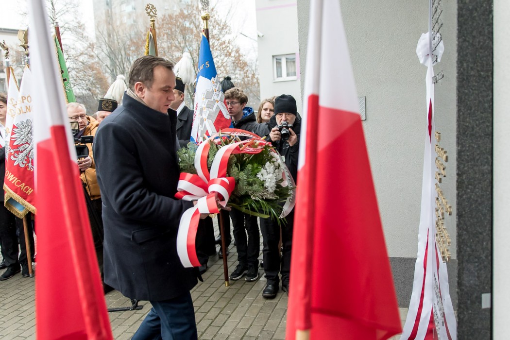 W odsłonięciu tablicy uczestniczył marszałek Jakub Chełstowski, wiceprezydent Katowic Waldemar Bojarun oraz dyrektor Śląskiego Centrum Wolności i Solidarności w Katowicach, Robert Ciupa.
