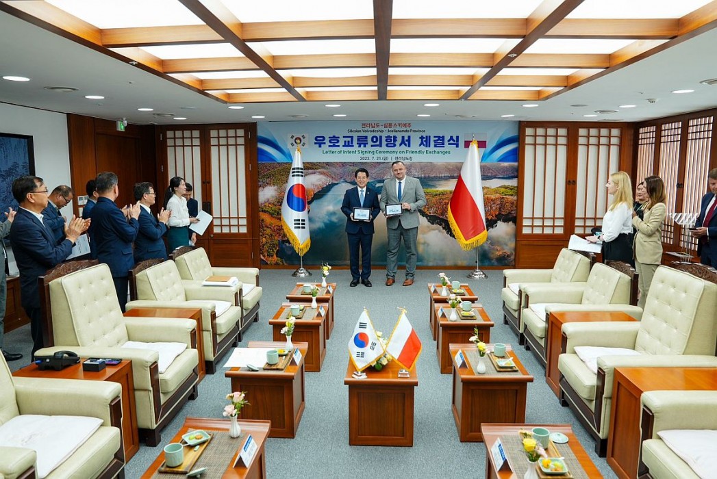 - Nie tylko zacieśniamy relacje dyplomatyczne z tak znaczącymi państwami jak Korea Południowa, co jest niezwykle ważne we współczesnym świecie, ale dyskutujemy także o rozszerzaniu współpracy gospodarczej pomiędzy regionami. Jednym z naszych priorytetów jest polityka inwestycyjna, a znaczenie i rola Województwa Śląskiego na międzynarodowej arenie stale rośnie. Przypomnę, że wiosną br. magazyn fDi Intelligence należący do grupy wydawniczej The Financial Times wyróżnił Województwo Śląskie miejscami w pierwszej dziesiątce wśród dużych, europejskich regionów za strategię przyciągania bezpośrednich inwestycji zagranicznych, otwartość dla biznesu oraz efektywność kosztową. To ogromny sukces dla naszego regionu, ale jednocześnie zaproszenie do współpracy. Województwo Śląskie umacnia się w gronie najbardziej atrakcyjnych ośrodków w Europie. Współpraca ze stroną koreańską jest kolejnym tego przykładem, zaś prowincja Jeollanamdo jest nie tylko największym dostawcą surowców przemysłowych w Korei, ale przede wszystkim jest regionem, który stawia na innowacyjne technologie w energetyce i smart city. Warto przypomnieć, że Korea Południowa jest liderem w rozwoju niskoemisyjnej gospodarki wodorowej i czystej mobilności. Bazując na istniejącym zapotrzebowaniu przemysłowym i dzięki opanowaniu całego łańcucha wartości wodoru, aktywnie przyczynia się do szybkiego rozwoju niskoemisyjnej produkcji wodoru w kraju. Co więcej, miejscowy rząd zamierza uczynić Koreę Południową wiodącym graczem w obszarze mobilności wodorowej. Republika Korei jest światowym liderem w dziedzinie nowych technologii, w tym technologii cyfrowych, technologii materiałów i nanomateriałów oraz bio- i ekotechnologii oraz jednym z najważniejszych partnerów UE w dziedzinie badań i innowacji. W ostatnich latach coraz częściej koreańskie i unijne instytucje wspólnie realizowały projekty badawcze – podkreśla marszałek Jakub Chełstowski.