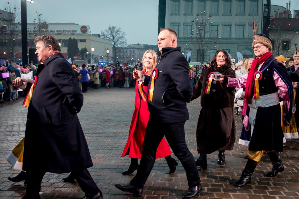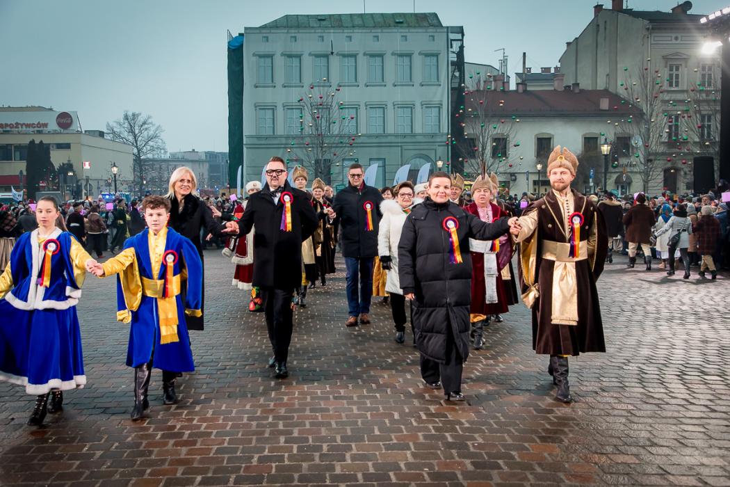 Inauguracja miała także symboliczny, wspólnotowy wymiar. Jeszcze przed koncertem ulicami miasta przeszły cztery barwne korowody, które spotkały się na Placu Wojska Polskiego. Tam, w obecności przedstawicieli władz państwowych, samorządowych oraz zaproszonych gości, uczestnicy wkroczyli w rok Polskiej Stolicy Kultury, tańcząc wspólnie poloneza.