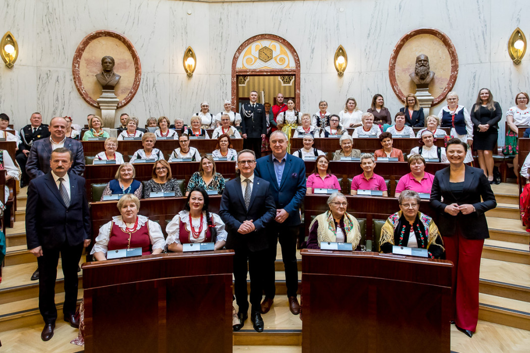 W Sali Sejmu Śląskiego wręczono symboliczne czeki na realizację zadań w ramach otwartego konkursu ofert na zadania publiczne dotyczące wspierania rozwoju gospodyń wiejskich aktywnych społecznie na terenie województwa śląskiego w roku 2024 – „Kultywowanie Tradycji Lokalnych”.