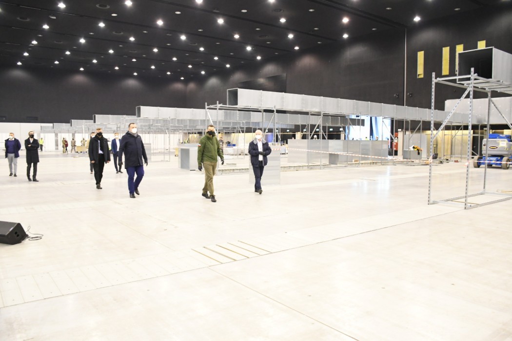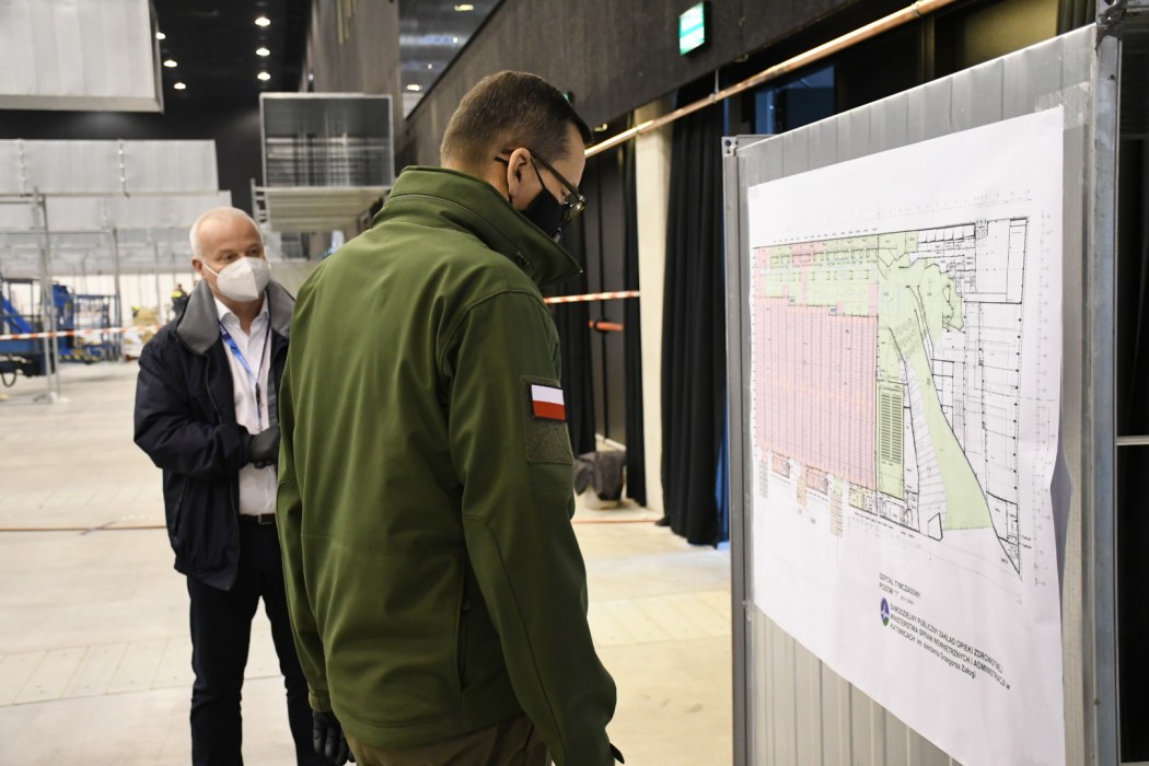 Premier, marszałek i wojewoda na budowie tymczasowego szpitala