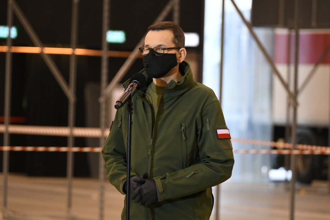Premier podczas spotkania z dziennikarzami przypomniał na wstępie, że w całym kraju obecnie obowiązuje najwyższy stopień zagrożenia epidemicznego. - Włączyliśmy hamulec bezpieczeństwa bardzo mocno po to, żeby ratować ludzkie życie i zdrowie. W wielu krajach Europy obowiązują zakazy przemieszczania się, godziny policyjne. W Dusseldorfie kara za nienoszenie maseczki wynosi 25 tys. euro. Ale chciałbym, żeby to nie strach przed koronawirusem i karą, nakładaną przez władze był elementem, który składnia do noszenia maseczki i przestrzegania zasad. Chciałbym, żeby przede wszystkim była to odpowiedzialność, odpowiedzialność za innych. Dzisiaj do tego centrum przyjechało sześć tirów: cztery z łóżkami, jeden z respiratorami i jeden z kardiomonitorami – poinformował Mateusz Morawiecki.