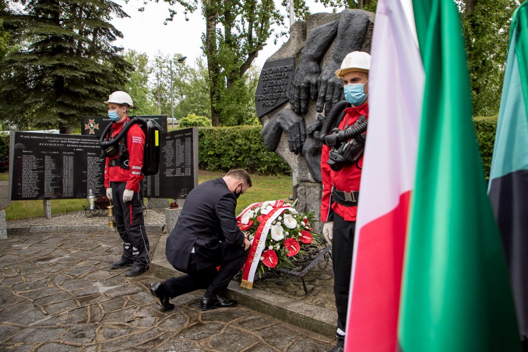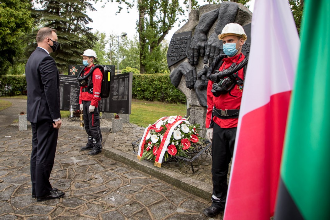 Prezydent RP wizytę w Województwie Śląskim rozpoczął od Bytomia i miejscowej Centralnej Stacji Ratownictwa Górniczego, gdzie złożył kwiaty pod pomnikiem Poległych na Służbie Ratowników Górniczych. – Dziś składam hołd wszystkim wam, niosącym pomoc w momentach, gdy górnicy w sytuacji zagrożenia życia, zawsze mogą na was liczyć. To wielkie poświęcenie – zwrócił się do ratowników prezydent RP.