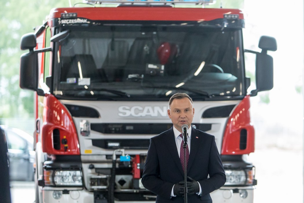 Prezydent RP wręczył również 35 promes na zakup nowych samochodów dla Ochotniczych Straży Pożarnej. – To służba obywatelska, ciesząca się nie przypadkiem najwyższym zaufaniem społecznym – zaznaczył prezydent.