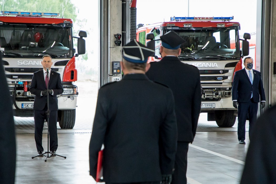 - Bytomscy strażacy mają w tej chwili bardzo dobre warunki do tego, aby przygotowywać się do służby, pełnić ją, a także odpocząć już po jej zakończeniu. Jednostka ma także zaplecze socjalne i sportowe, gdzie strażacy mogą szlifować swoją kondycję – akcentował prezydent Andrzej Duda.