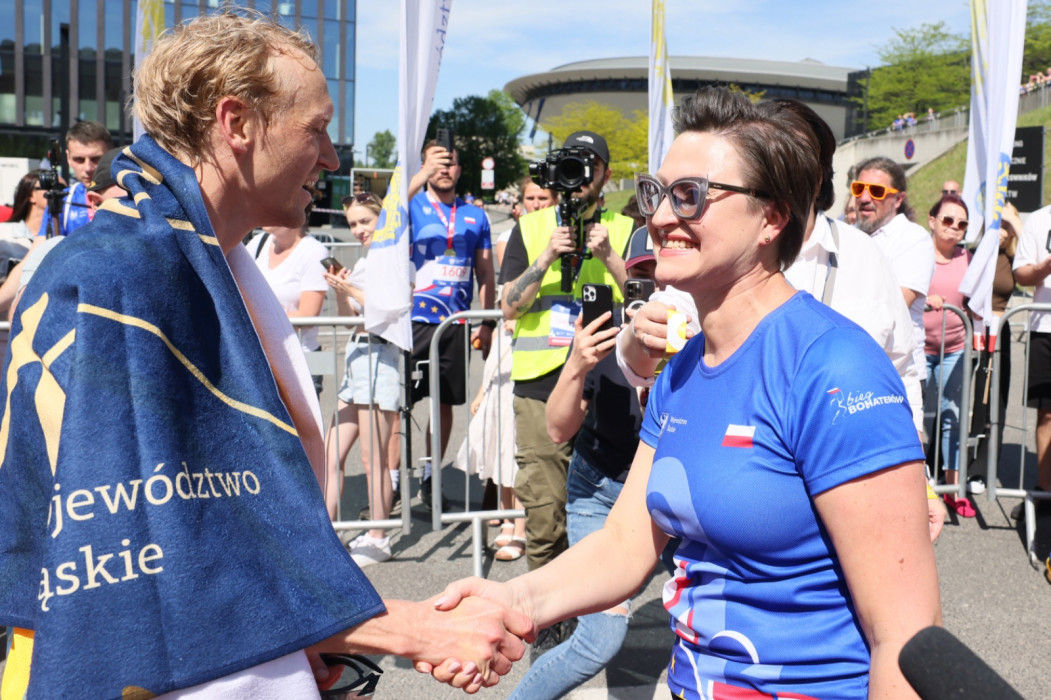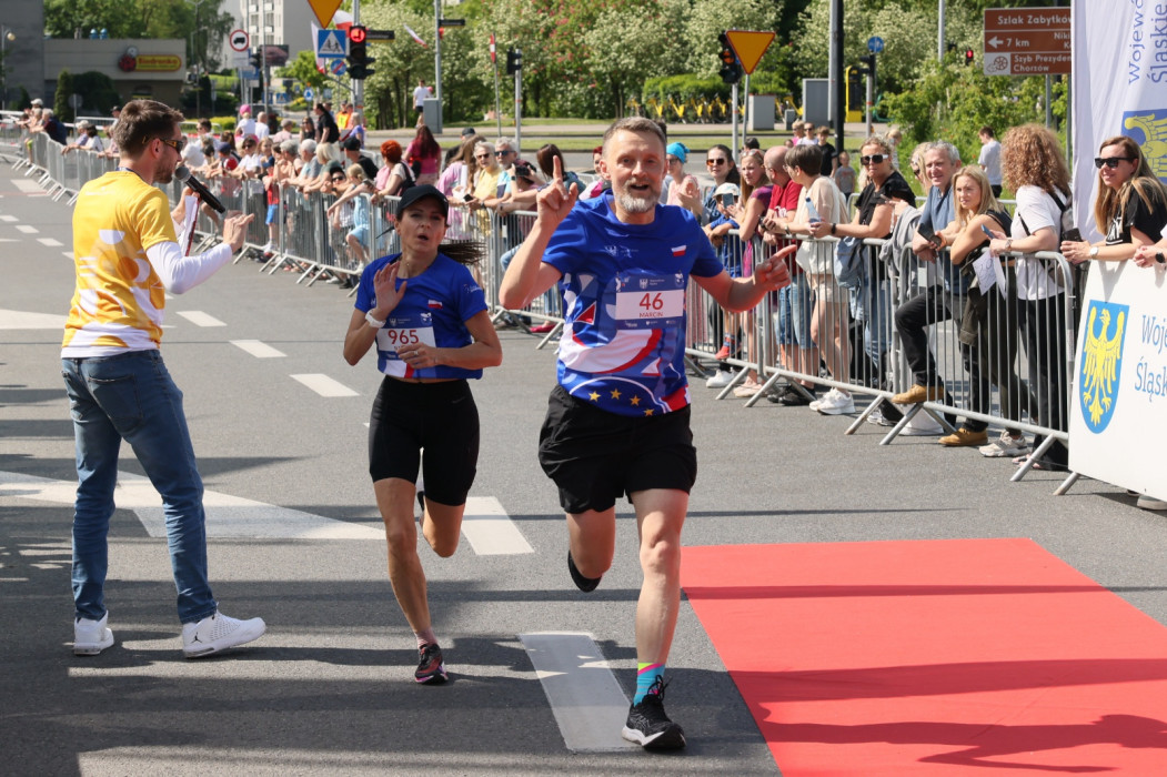 „Towarzyszą nam dzisiaj niesamowite emocje, dlatego, że mamy prawie cztery tysiące uczestników w obu biegach, ale świętujemy też dzisiaj coś zupełnie wyjątkowego – dwadzieścia lat Polski w Unii Europejskiej. To dla nas radość i ten entuzjazm widać dzisiaj w Katowicach, widać go tutaj na starcie tego biegu, widać go na ulicach. A znajdujemy się w Strefie Kultury, która powstała także dzięki środkom z Unii Europejskiej” – mówiła radna Sejmiku Województwa Śląskiego, Katarzyna Stachowicz.