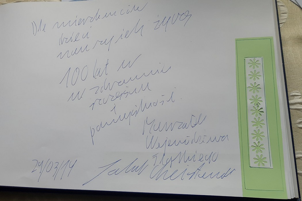 W trakcie uroczystości marszałek Jakub Chełstowski dokonał wpisu do księgi pamiątkowej, w której tej szkolnej społeczności życzył dalszej pomyślności na następnych 100 lat.