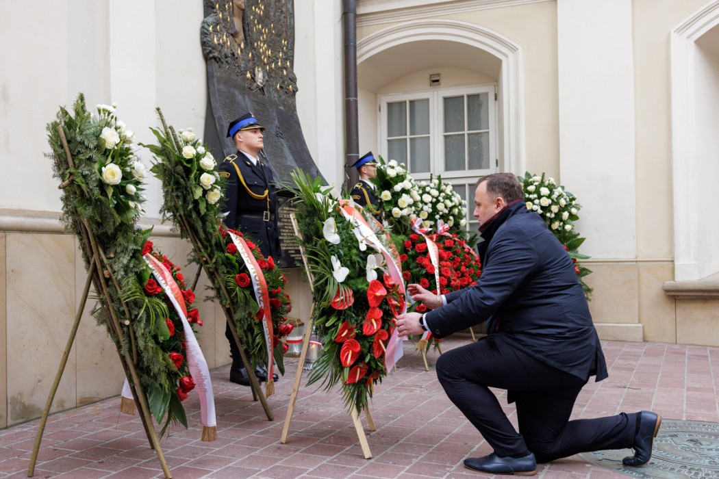 Mszę świętą, której przewodniczył metropolita częstochowski abp Wacław Depo, poprzedziła modlitwa i złożenie kwiatów przy Epitafium Smoleńskim. Inicjatorem wydarzenia była europoseł Jadwiga Wiśniewska. W uroczystości wziął udział Minister Obrony Narodowej Mariusz Błaszczak, marszałek Jakub Chełstowski, wiceprzewodnicząca Sejmiku Województwa Śląskiego Beata Kocik, wojewoda i wicewojewoda śląski, a także parlamentarzyści i samorządowcy z regionu.
