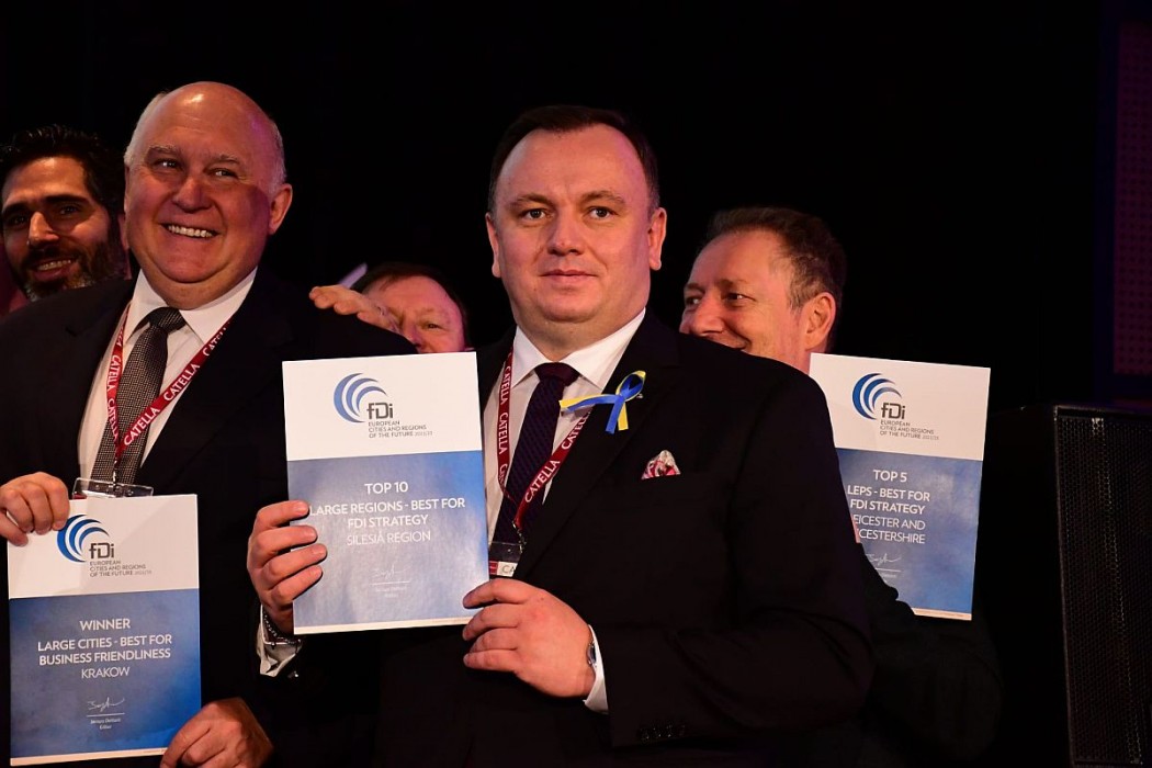 Na poziomie regionalnym zespół badawczy fDi ocenił 148 regionów europejskich, pogrupowanych w trzy kategorie wielkości — małe, średnie i duże. Województwo Śląskie znalazło się w prestiżowych towarzystwie największych i najbardziej atrakcyjnych ośrodków w Europie, zajmując wysokie miejsca wśród dużych regionów w kategorii: strategia przyciągania bezpośrednich inwestycji zagranicznych oraz w kategorii efektywność kosztowa.