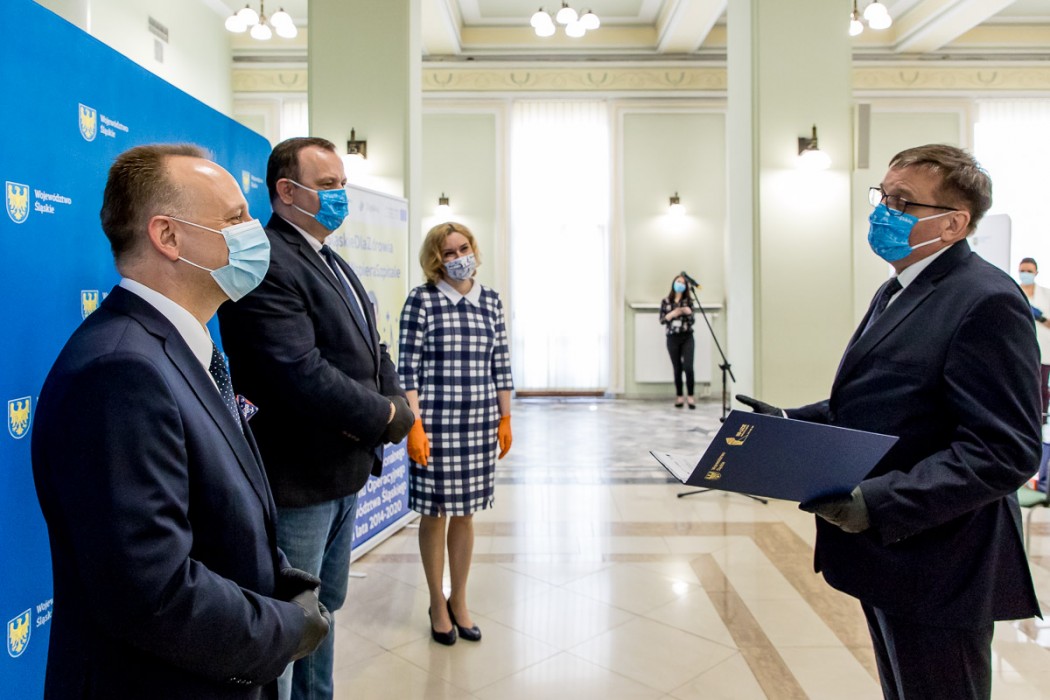 W Urzędzie Marszałkowskim podpisano pierwsze z umów ze szpitalami z województwa śląskiego. To środki pochodzące z Budżetu Państwa i z Unii Europejskiej w ramach przesunięć w Regionalnym Programie Operacyjnym Województwa Śląskiego. Łącznie na ten cel przeznaczonych zostanie 123 mln zł. W spotkaniu, obok przedstawicieli szpitali, uczestniczył marszałek Jakub Chełstowski, wicemarszałek Dariusz Starzycki i Beata Białowąs, członek Zarządu Województwa Śląskiego.