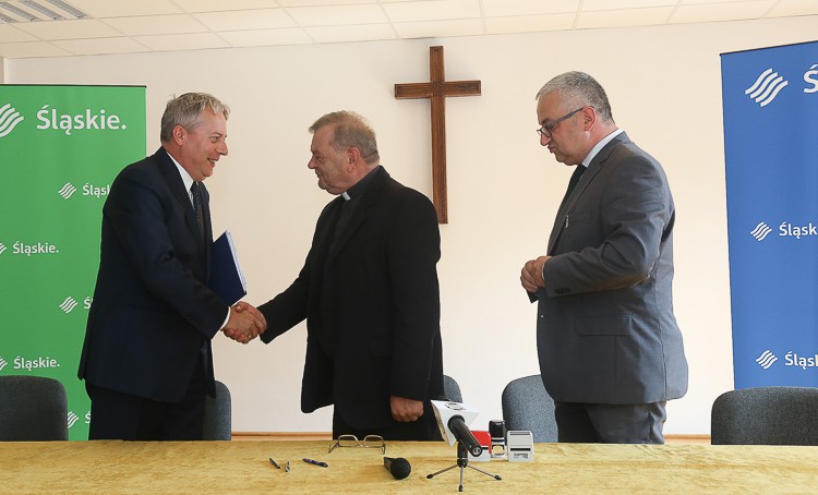 Celem projektu jest stworzenie nowych możliwości do prowadzenia działalności kulturalnej przez realizację prac budowlano-konserwatorskich w Kościele Jezusowym w Cieszynie. Umowę w tej sprawie podpisał Marszałek Województwa Śląskiego Wojciech Saługa, członek Zarządu Województwa Henryk Mercik i proboszcz parafii ks. Janusz Sikora.