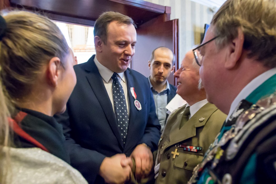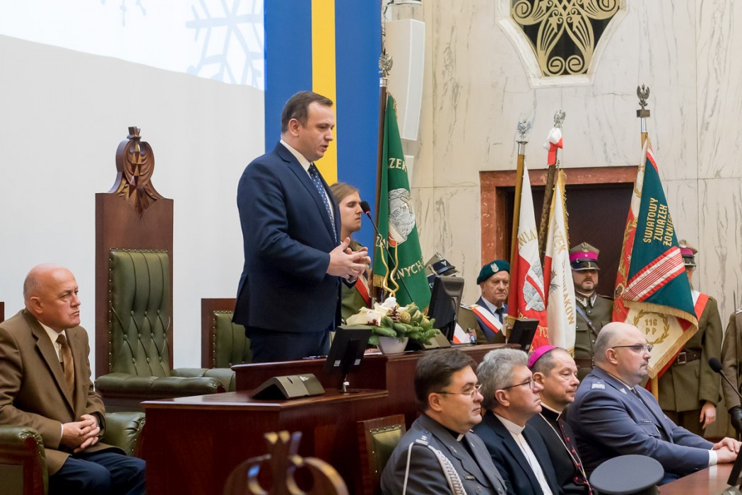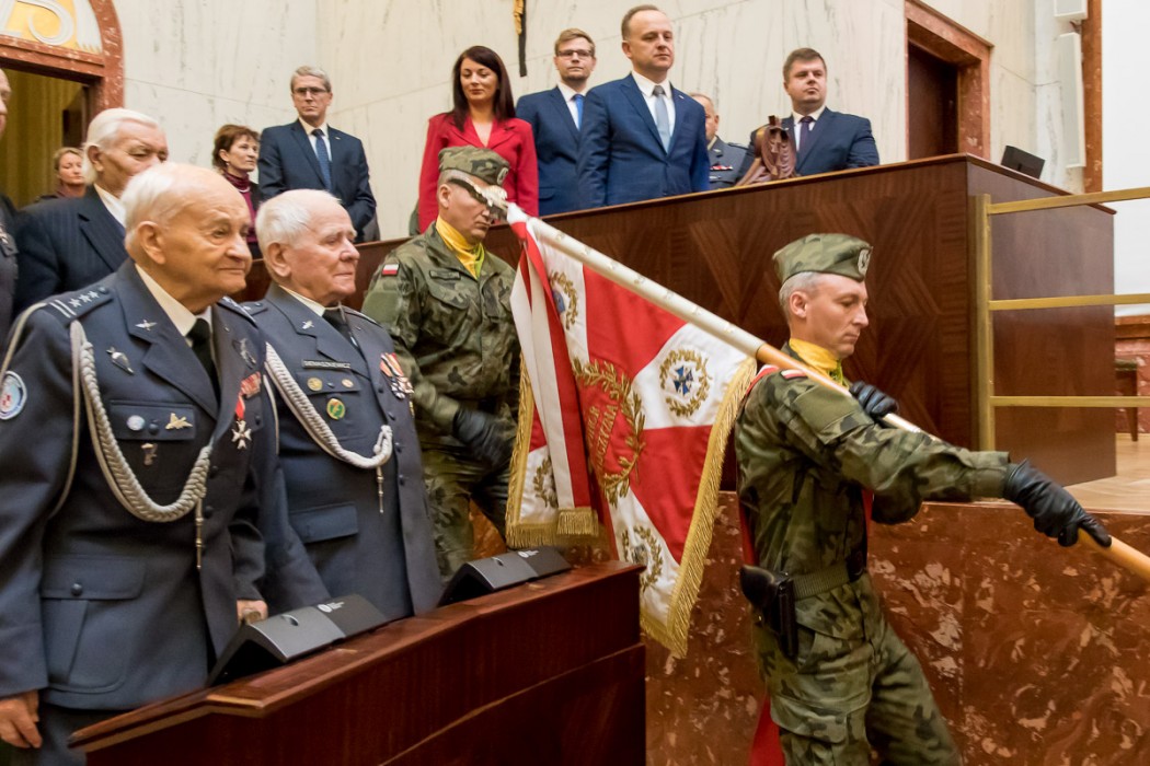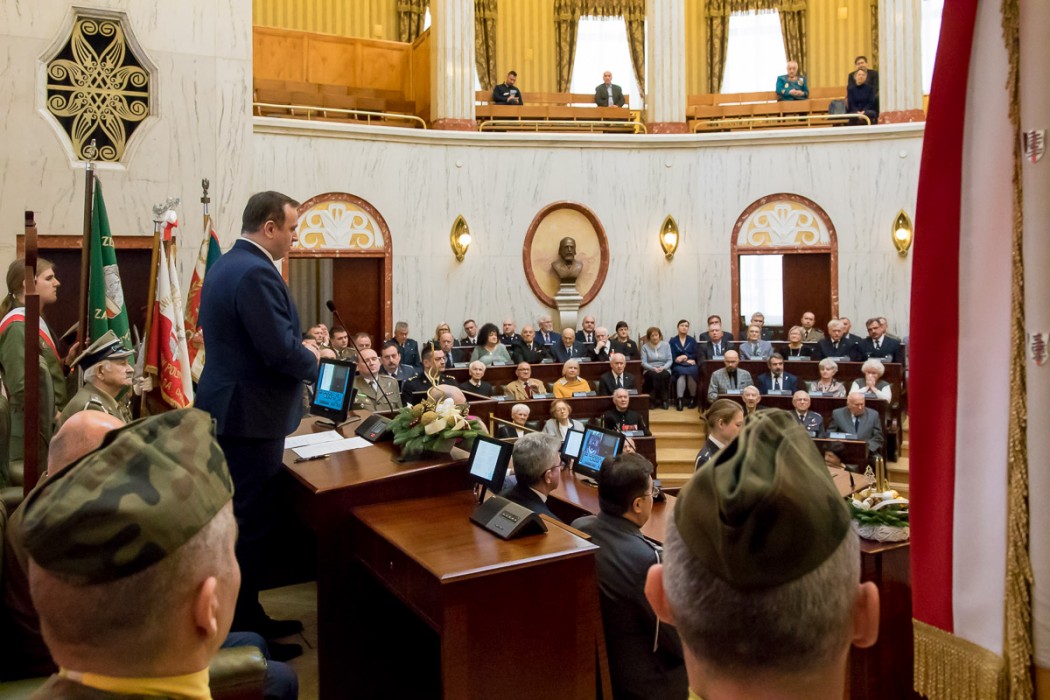 W trakcie uroczystości przedstawiciele środowisk kombatanckich wyróżnili marszałka Jakuba Chełstowskiego i przewodniczącego Sejmiku Jana Kawuloka Kombatancką Odznaką Jubileuszową „Polska Niepodległa 1918-2018”.