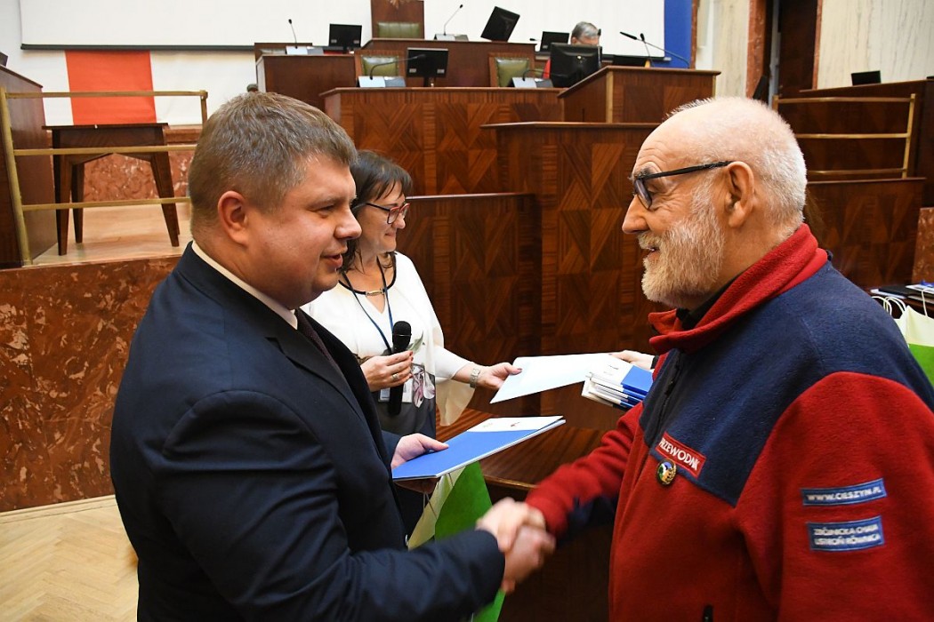 „Dla nas jesteście ambasadorami piękna małych ojczyzn, o których, jak nikt potraficie opowiadać i dzielić się wiedzą o ich historii”. podkreślił wicemarszałek Wojciech Kałuża, podczas uroczystego spotkania z przedstawicielami stowarzyszeń i organizacji turystycznych, które odbyło się w Sali Sejmu Śląskiego.