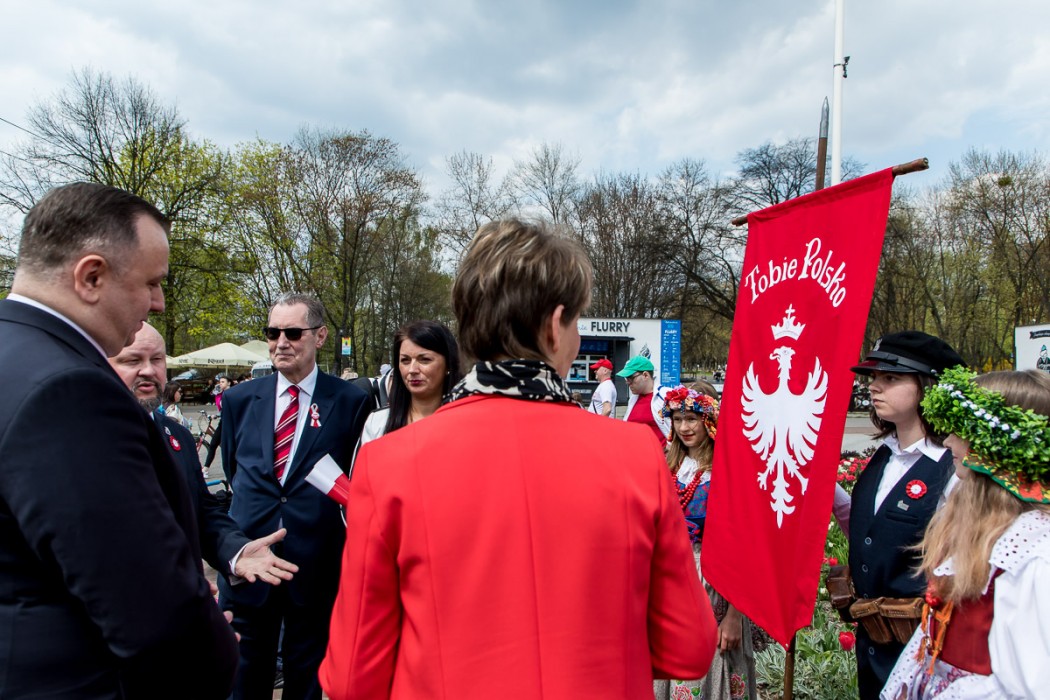 W trakcie wydarzenia rozdawano flagi Polski. Zespół Pieśni i Tańca „Śląsk” wykonał hymn państwowy i „Rotę”.