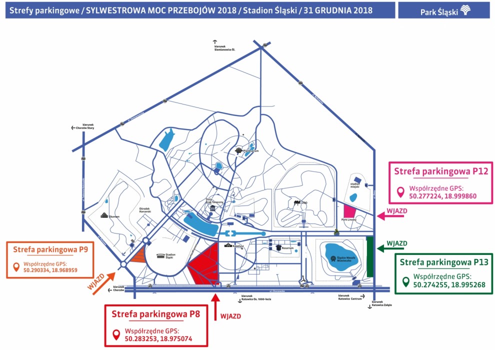 Wszystkie osoby wybierające się na Stadion Śląski zachęcamy do skorzystania z komunikacji publicznej, która kursować będzie ze zwiększoną częstotliwością. Park Śląski udostępnił miejsca parkingowe. Bilet parkingowy można zakupić w przedsprzedaży internetowej na stronie www.ticketmaster.pl do dnia 31 grudnia do godz. 16.00 w cenie 20 zł. Po zakupie bilet należy wydrukować i kierować się do Strefy Parkingowej poprzez współrzędne GPS podane na bilecie. Jeżeli w przedsprzedaży internetowej nie zostaną wykupione wszystkie miejsca parkingowe, będzie możliwość ich zakupienia na miejscu, w dniu imprezy, w momencie wjazdu na teren Parku Śląskiego, jednak w sprzedaży bezpośredniej cena biletu parkingowego wynosić będzie 30 zł. Liczba miejsc parkingowych na terenie Parku jest ograniczona.