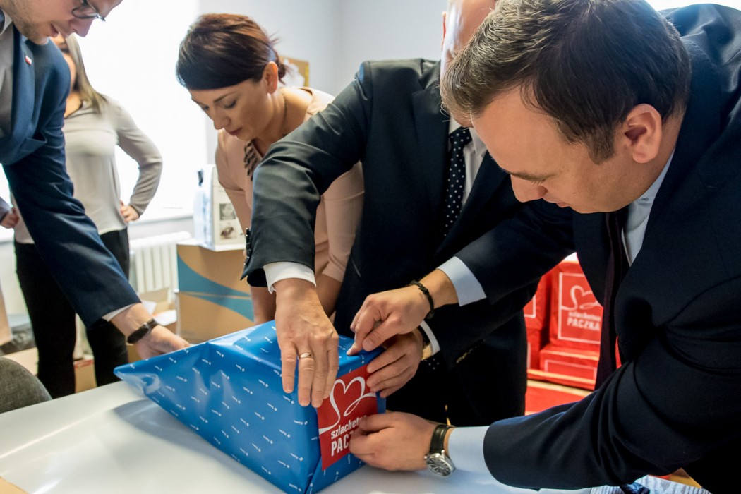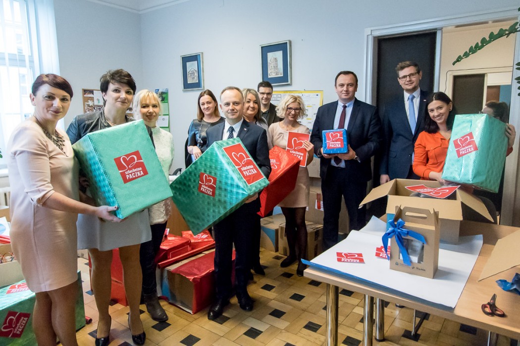 „To szczególna i wynikająca z potrzeby serca inicjatywna pracowników Urzędu Marszałkowskiego. Oby takich gestów było jak najwięcej obok nas na co dzień” – podkreślił podczas pakowania prezentów marszałek Jakub Chełstowski.