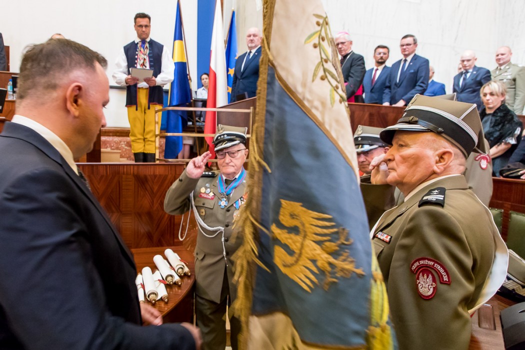 Podczas obrad, Włodzimierz Czechowski reprezentujący Związek Kombatantów RP przekazał na ręce marszałka historyczny sztandar Związku Powstańców Śląskich Grupy Panewniki. Sztandar trafi do Muzeum Powstań Śląskich w Świętochłowicach.