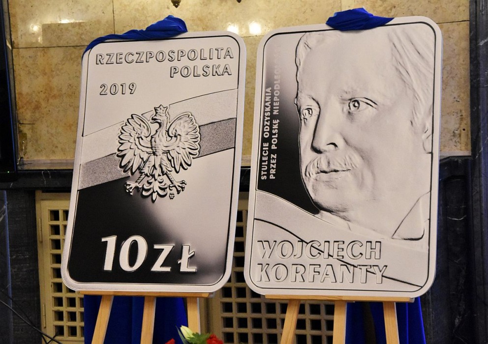 Narodowy Bank Polski w ramach serii „Stulecie odzyskania przez Polskę niepodległości” wyemitował dwie monety kolekcjonerskie z podobizną Wojciecha Korfantego. Jest to moneta złota o nominale 100 zł oraz srebrna o nominale 10 zł. Ich nakład jest limitowany. Wynosi odpowiednio 1500 szt. oraz 13 tys. szt.