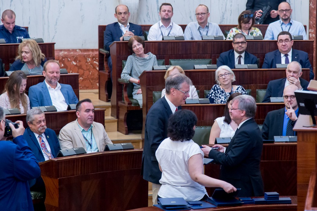 Podczas uroczystego otwarcia konferencji przewodniczący Sejmiku Jan Kawulok oraz dyrektor Zarządu Dróg Wojewódzkich w Katowicach Zbigniew Tabor wręczyli pamiątkowe medale dla współpracujących podmiotów i instytucji oraz długoletnich pracowników.