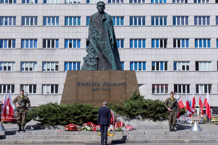 Z okazji 145 rocznicy urodzin Wojciecha Korfantego wicemarszałek Michał Gramatyka złożył kwiaty pod jego pomnikiem na placu Sejmu Śląskiego