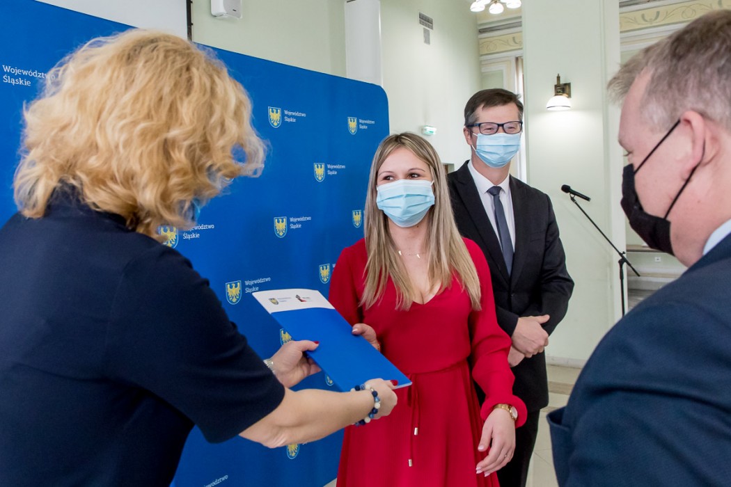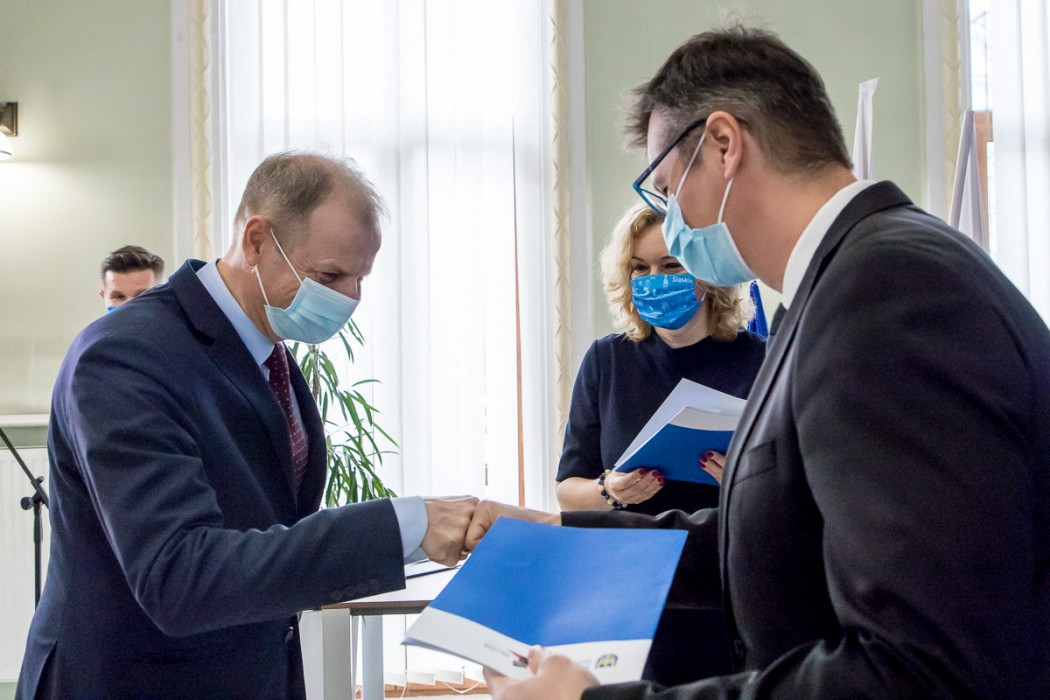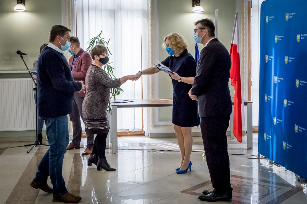 Umowy na realizację inwestycji wręczyli przedstawicielom gmin Beata Białowąs, członek Zarządu Województwa Śląskiego i Przemysław Wydra, radny Sejmiku.