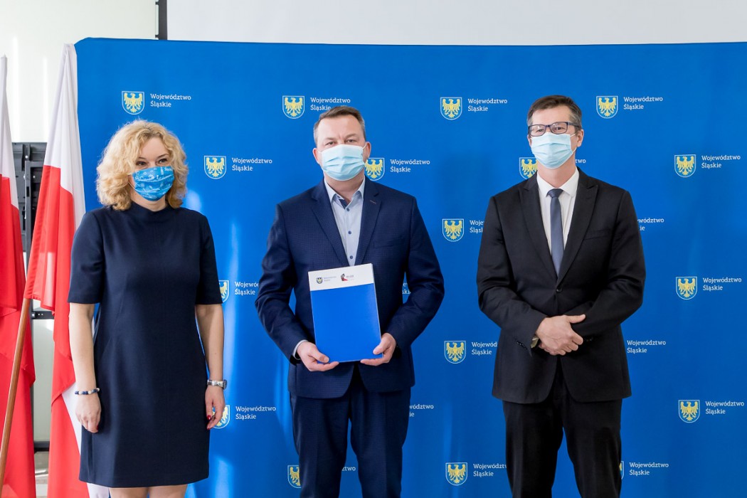 Umowy na realizację inwestycji wręczyli przedstawicielom gmin Beata Białowąs, członek Zarządu Województwa Śląskiego i Przemysław Wydra, radny Sejmiku.