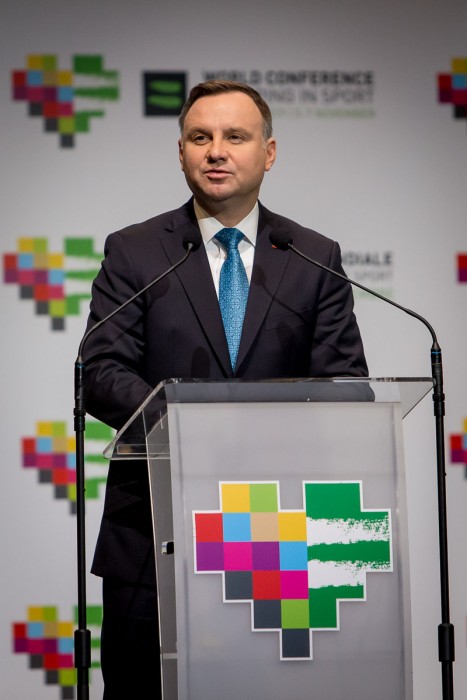 „Dziękuję władzom Światowej Agencji Antydopingowej za to, że tak ważna konferencja odbywa się w Polsce, w czasie, który jest dla nas bardzo ważny. Obchodzimy stulecie odzyskania niepodległości i odrodzenia polskiego sportu, z naszym narodowym godłem i orłem na piersi, a tu, w województwie śląskim świętujemy stulecie powrotu tych ziem do Ojczyzny. To dla nas miejsce szczególne, od stuleci symbol ciężkiej pracy i wielkiego plony dla całego kraju, w którym mieszkają ludzie pracowici i uczciwi. To symboliczne, że konferencja dotycząca uczciwego sportu odbywa się właśnie tutaj. Walka z dopingiem to nie tylko walka o uczciwość w sporcie, ale również o życie i zdrowie samych sportowców” – podkreślał prezydent RP Andrzej Duda.