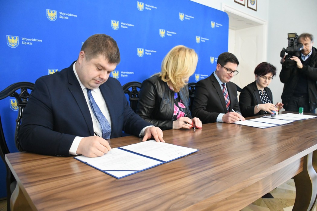Podpisy pod umowami złożyli: Beata Białowąs - członek zarządu Województwa Śląskiego oraz Wojciech Kałuża, wicemarszałek województwa.