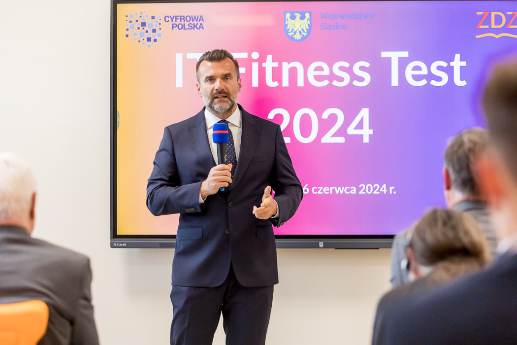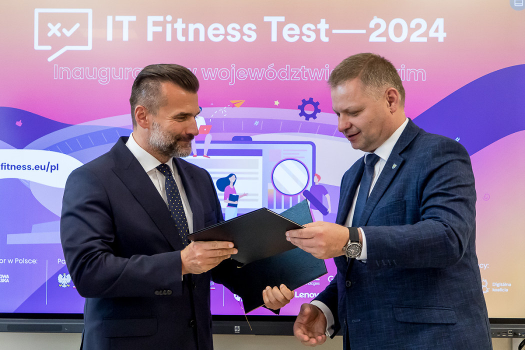 W całym regionie rusza IT Fitness Test 2024 - ogólnopolski sprawdzian kompetencji cyfrowych. W konferencji i lekcji pokazowej zapowiadającej wydarzenie uczestniczył członek Zarządu Województwa Śląskiego, Rafał Adamczyk. Porozumienie o współpracy pomiędzy Urzędem Marszałkowskim Województwa Śląskiego, a organizującym test Związkiem Cyfrowa Polska zostało przekazane w katowickim Technikum Lotniczym.