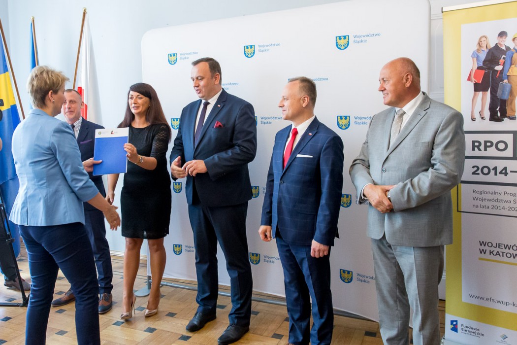 Z dyrektorami urzędów pracy, które otrzymały środki, spotkał się Jakub Chełstowski, marszałek województwa, Dariusz Starzycki, wicemarszałek województwa, Izabela Domogała, Członek Zarządu Województwa, Jan Kawulok, przewodniczący Sejmiku Województwa Śląskiego oraz Marcin Flaczyński wicedyrektor Wojewódzkiego Urzędu Pracy w Katowicach.