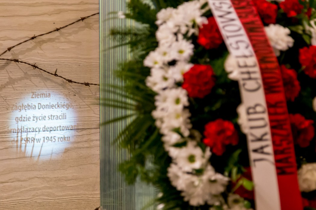 Marszałek Jakub Chełstowski i członek Zarządu Izabela Domogała odwiedzili wcześniej siedzibę Centrum Dokumentacji Górnoślązaków do ZSRR w 1945 roku w Radzionkowie i złożyli kwiaty w hołdzie ofiarom tragedii.