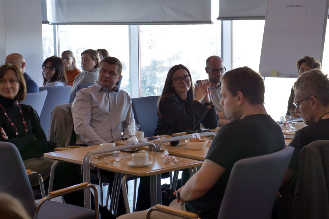 Formuła spotkania polegała na podziale uczestników na pięć grup tematycznych. Cztery z nich uczestniczyły w warsztacie w sposób stacjonarny, a jedna w formie on-line za pośrednictwem spotkania na platformie Teams. Kolejno, każda z grup przedstawiała swoje indywidualne wyniki wspólnej pracy.